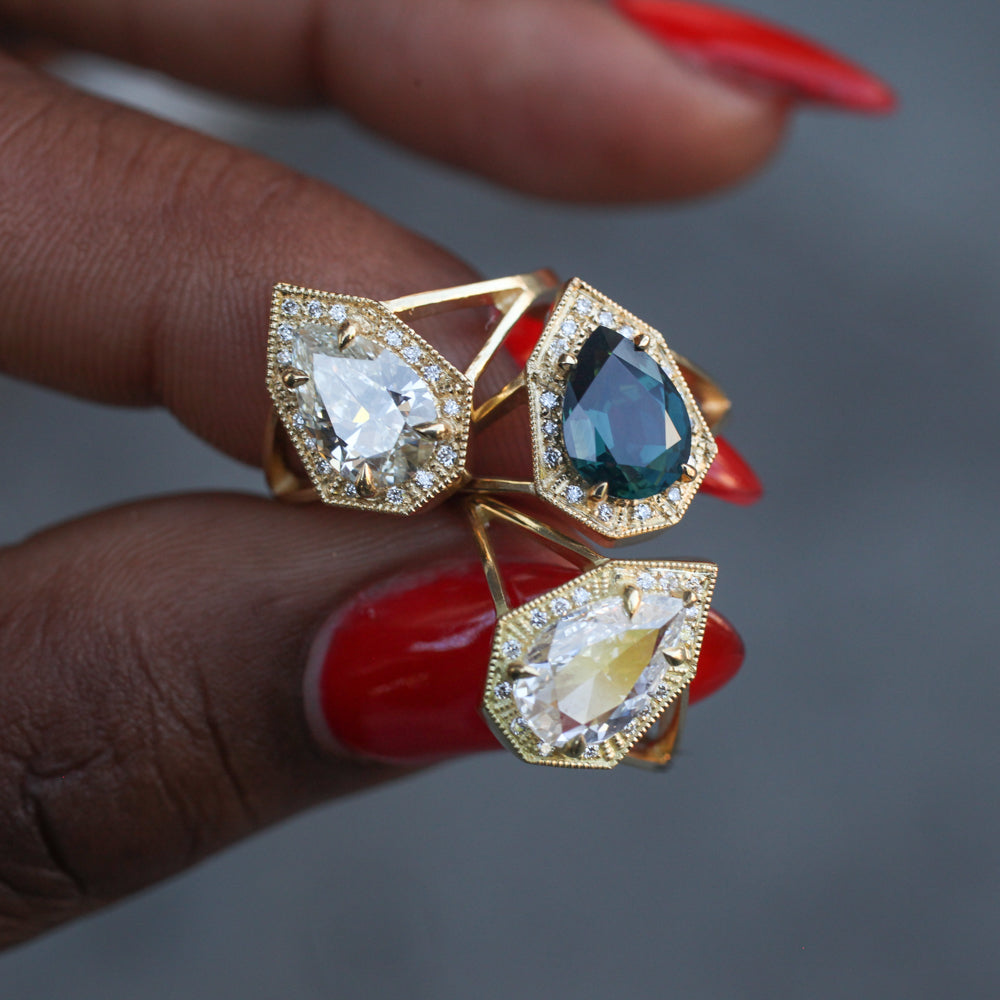 Begin with a blank canvas (bespoke), or chose a stone and let one of our beloved designs be your muse (bespoke-ish)