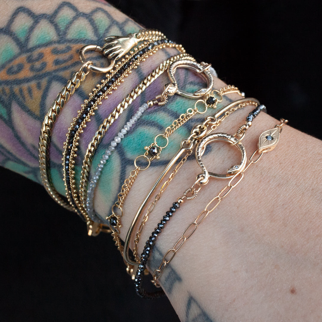 - solid hand and ring; semi-hollow curb chain for 14K gold